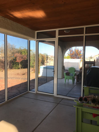 Safe Shield allows you to custom design your patio room based on your particular needs. Whether you're looking to incorporate single entry doors, sliding doors, or French door options we have you covered. Our patio panel size can be custom designed to allow for view, airflow and solar protection. As always all of our patio products are made from a T-6 aluminum alloy and available with your choice of 0.028 and 0.035 gauge mesh options.