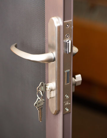 All of our Entry Security Screen Doors are made from a T-6 aluminum alloy. All doors also come with the option of 0.028 gauge mesh system at 12 holes per square inch or 0.035 gauge mesh system at 10 holes per square inch. All entry door systems come equipped with a hardspec keyed entry lever handle with a high impact deadbolt system, ensuring tamper- resistant protection at your home's main entry point!